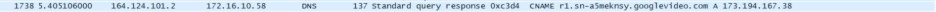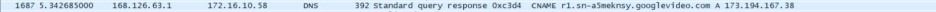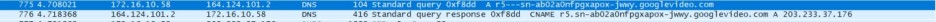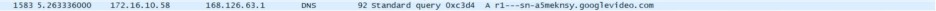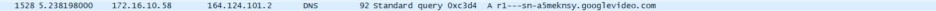 같은 방법으로 가장 많은 패킷을 보낸 주소를 따라가 보았을 때, 가장 많은 패킷을 보낸 주소의 이름이 r4---/googlevideo.com임을 알았다.