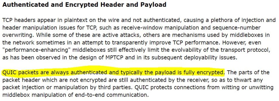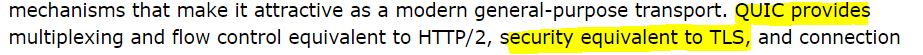 QUIC은 TLS와 동등한 수준의 보안을 제공한다고 한다.