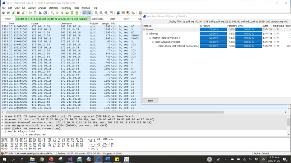 구글은 크롬으로 들어오는 약 50%의 요청을 QUIC으로 처리한다는 기사가 있다. 그렇다면, 실제로도 그런지Wireshark로 QUIC을 캡쳐해 보자.