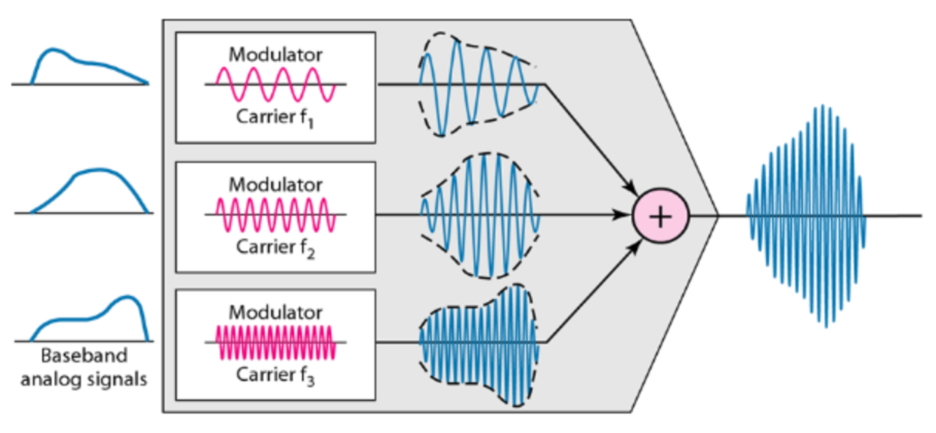 한국어로는 주파수 분할 다중화라 한다.여러 신호를 다른 주파수로 다중화하여 한 채널로 전송하는, 전송채널 대역폭의 효율을 높이기 위한 기술이다.
