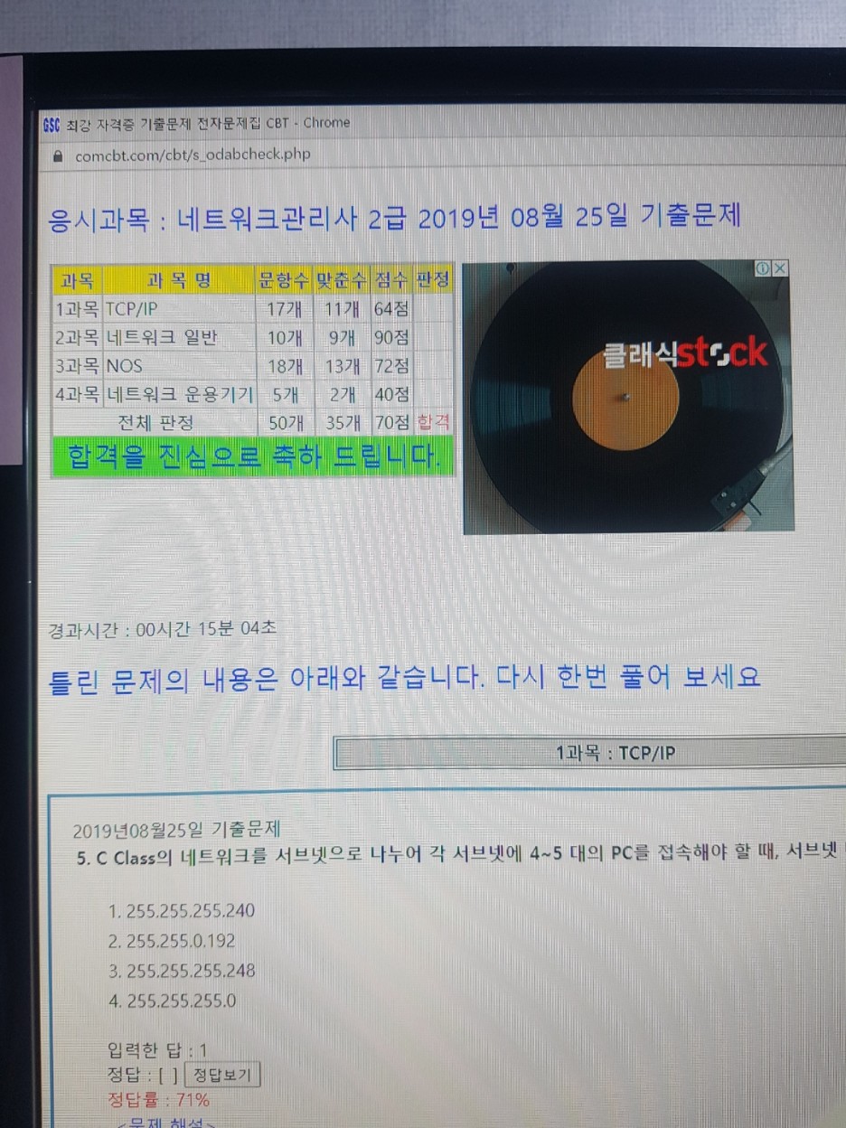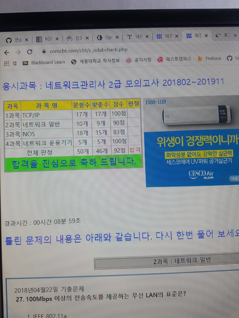 아무래도 네트워크 부분은 쉬웠는데, 컴공이 아니라서 웹프로그래밍 관련 수업을 들은 적은 없다보니 3과목 부분(리눅스/윈도우 서버) 부분이 제일 많이 틀렸다. 어렵지는 않은데, 명령어 등 외워야 할 내용이 많다.