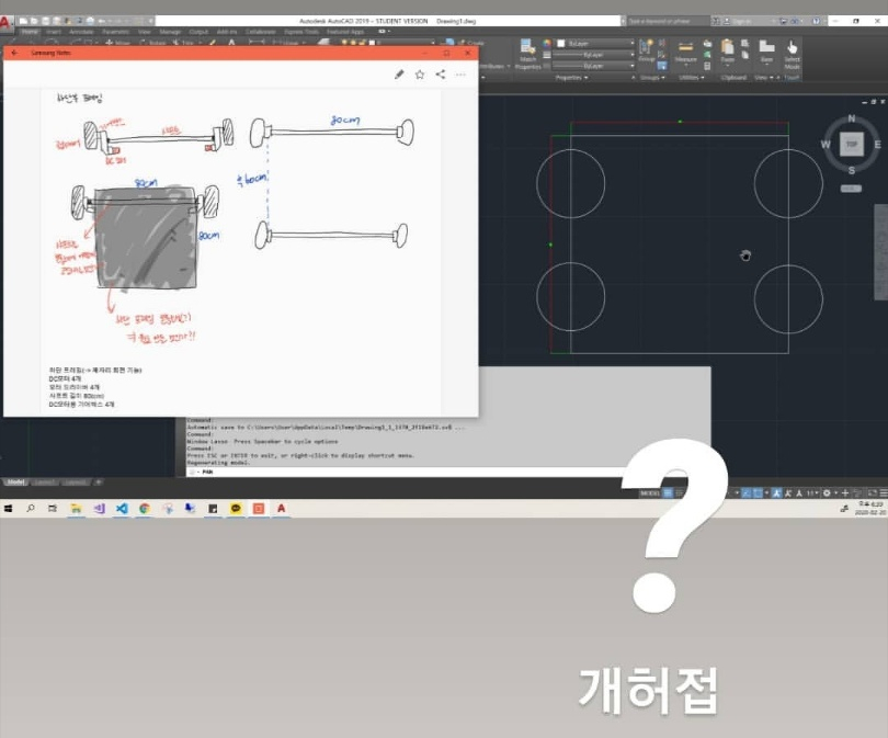 우선 하단부 프레임을 제작 맡기려면 도면이 있어야 하기 때문에 난생 처음으로 오토캐드를 설치해서 사용해 보았다.
