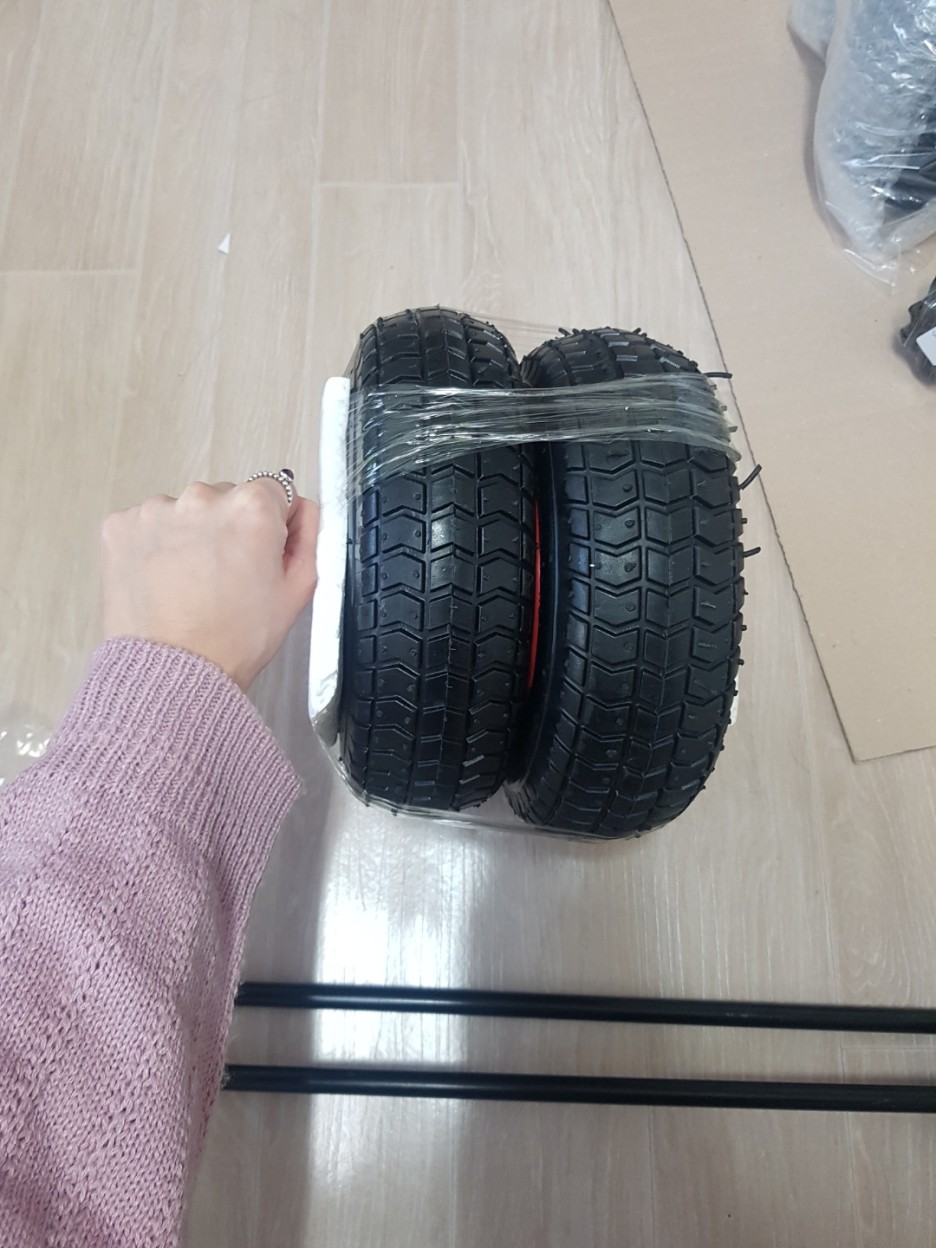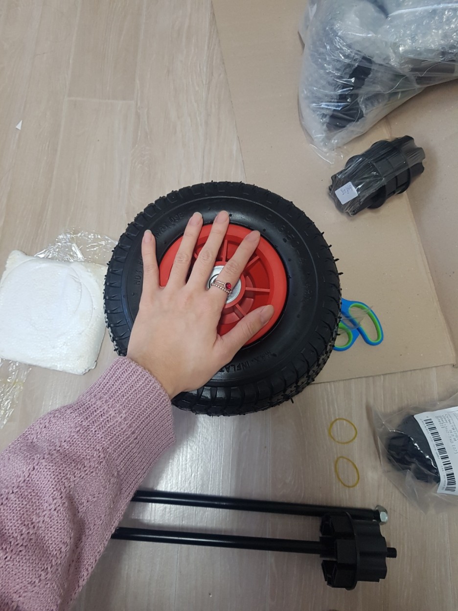 바퀴 사이즈는 일부러 큰 사이즈로 골랐다. 크고 무거워야 어지간한 돌부리 같은 장애물에도 넘어거나 흔들리지 않을 것 같다는 판단에서이다.