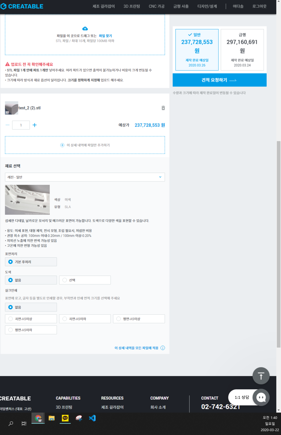 몸체 제작 : 레진 3D 프린팅 2억 3천만원(?)
